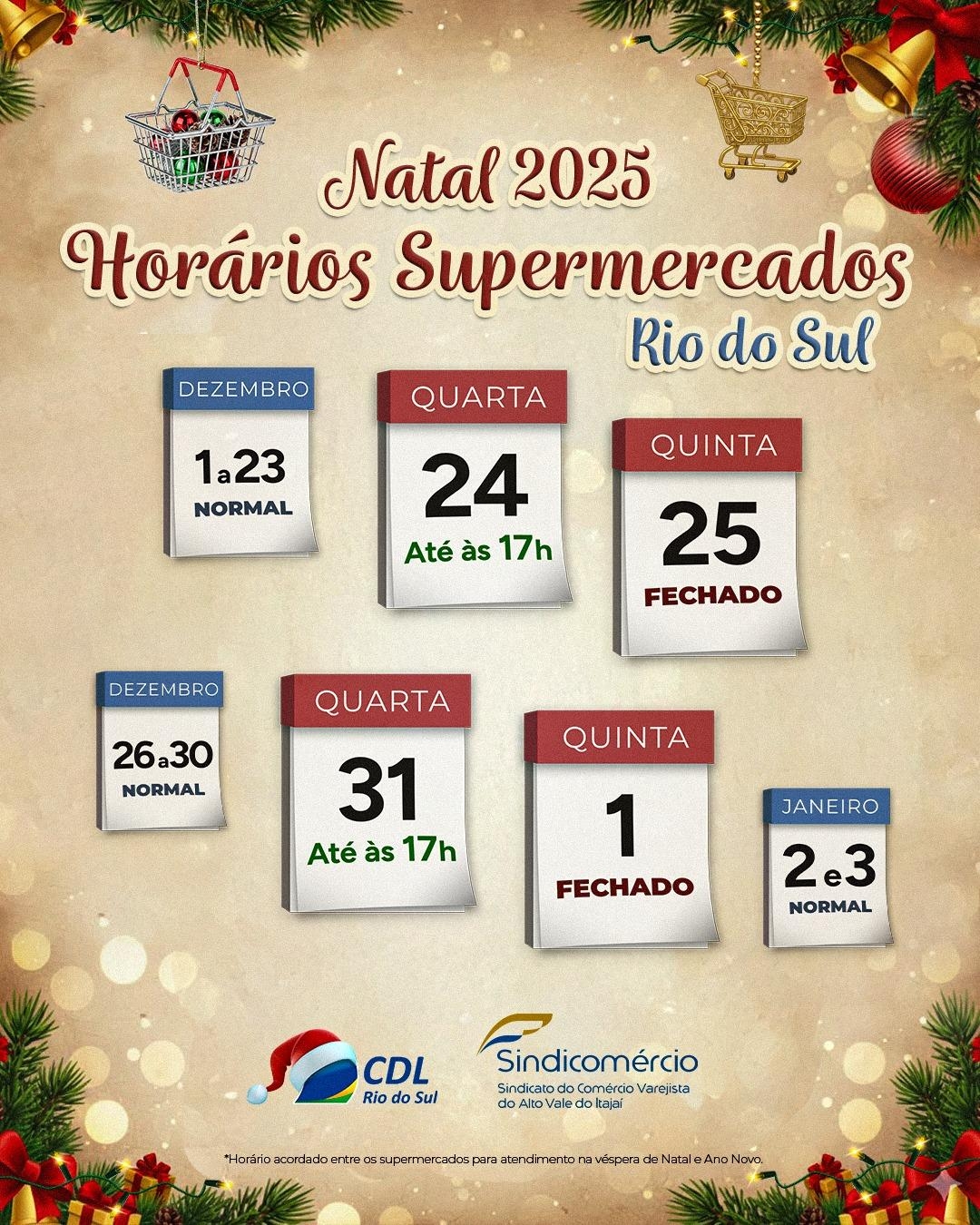 Horário acordado entre os supermercados para atendimento na véspera de Natal e Ano Novo.